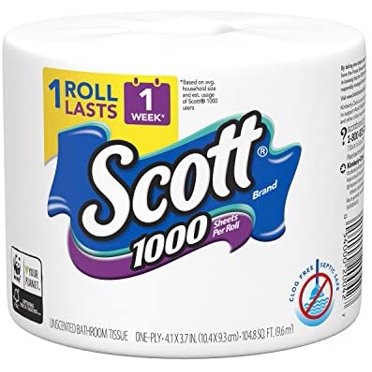 Scott 1000 Sheets Per Roll Toilet Paper 27 Rolls Sewer Safe Septic Safe 1 Ply Bath Tissue America S Longest Lasting Roll Walmart Com